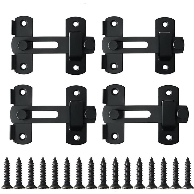 Copiel Pack of 4 Door Lock, Stainless Steel Latch Door Bolt with Screws, Door Lock Sliding Lock Flip Latch Gate Latches Slide Latch for Gate Window Bedroom Wine Cabinet Black