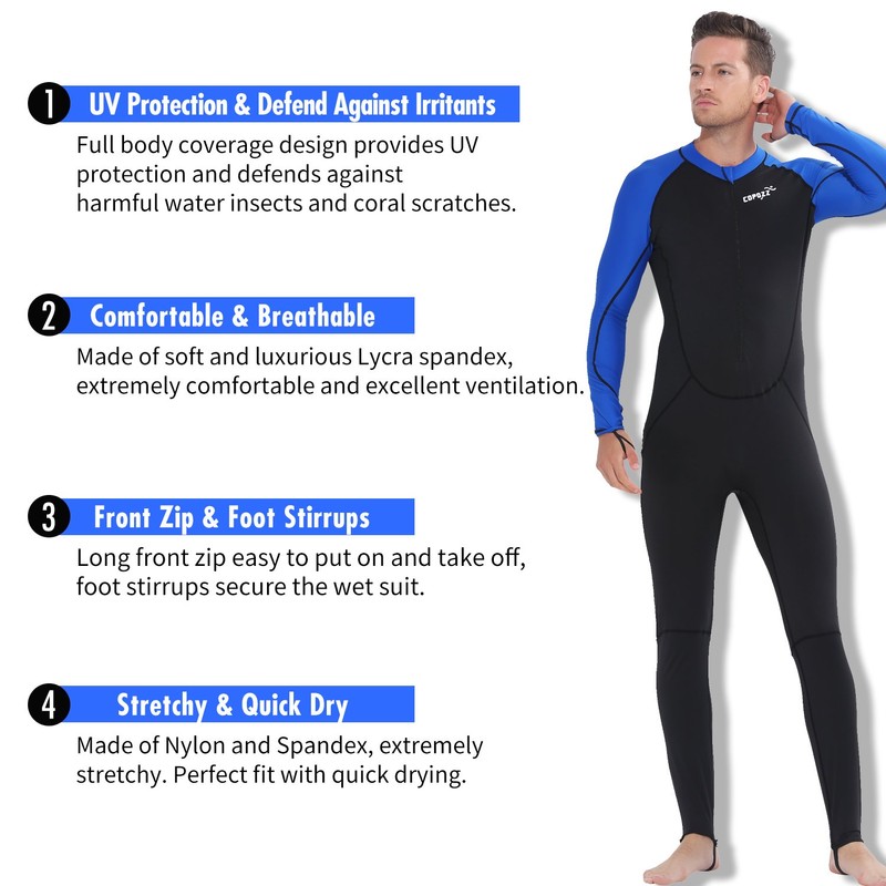 • 【Perfect For Sports Activities】Full swimsuit provides total body cover. Ideal for beginners and sports fans. Best choice for wake boarding, jet skiing, swimming, surfing, kayaking, Scuba diving, snorkeling, white water rafting, pedal boarding and all other water sports.