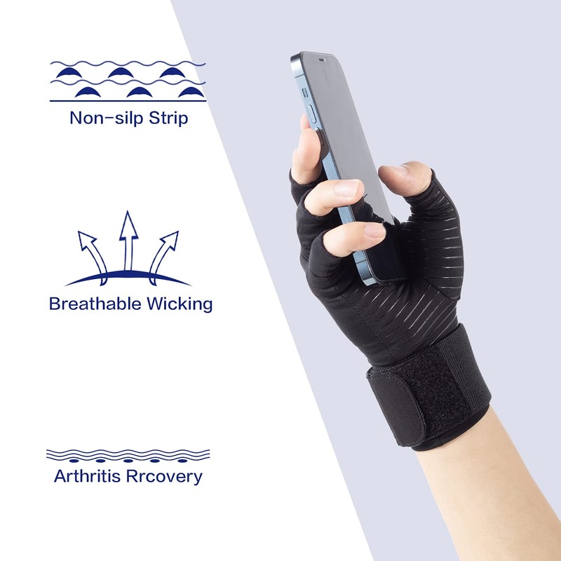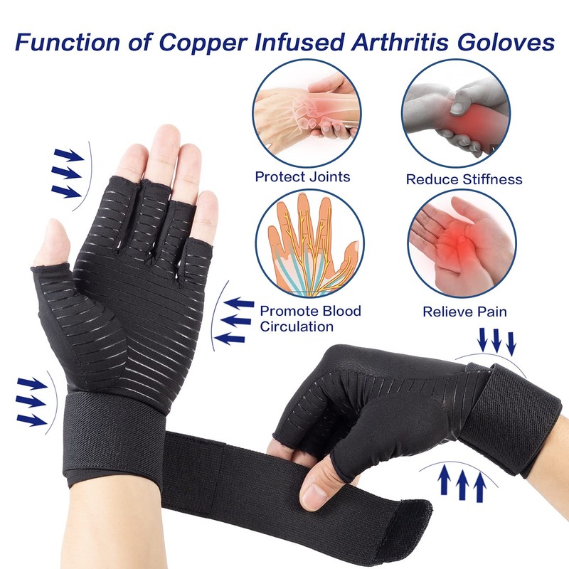 Copper Compression Arthritis Gloves with Adjustable Strap, Best Hand Wrist Su...