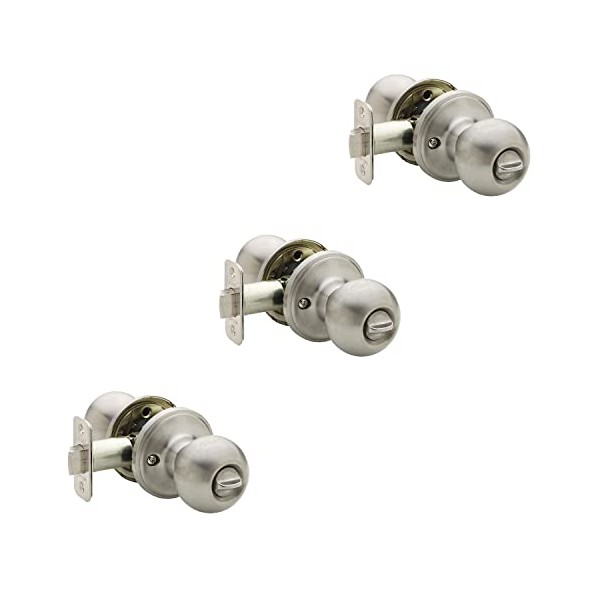 Copper Creek BK2030SS-3 Ball Door Knob, Privacy Function, 3 Pack, Satin Stainless