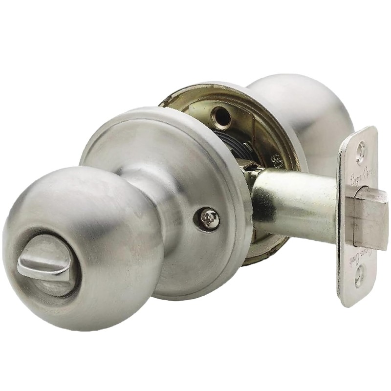 Copper Creek Ball Door Knob, Privacy Function, Keyless Turn Thumb Locking Ball Design, Interior/Exterior Reversible Round Handle for Right & Left Side, Bedroom & Bathroom - Satin Stainless - 1 Pack