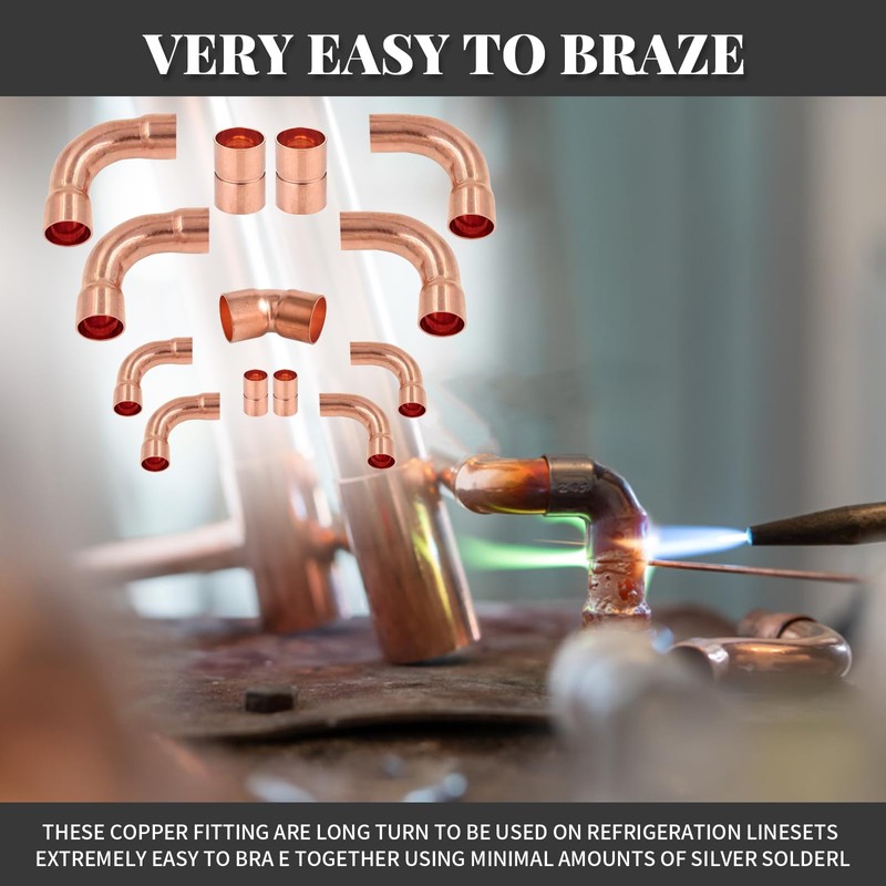 - Wide Range of Applications: These copper fittings are versatile, with fittings measuring approximately 3/8‘ or 7/8’, and are suitable for both residential and commercial HVAC systems, as well as for use with a wide range of HVAC systems