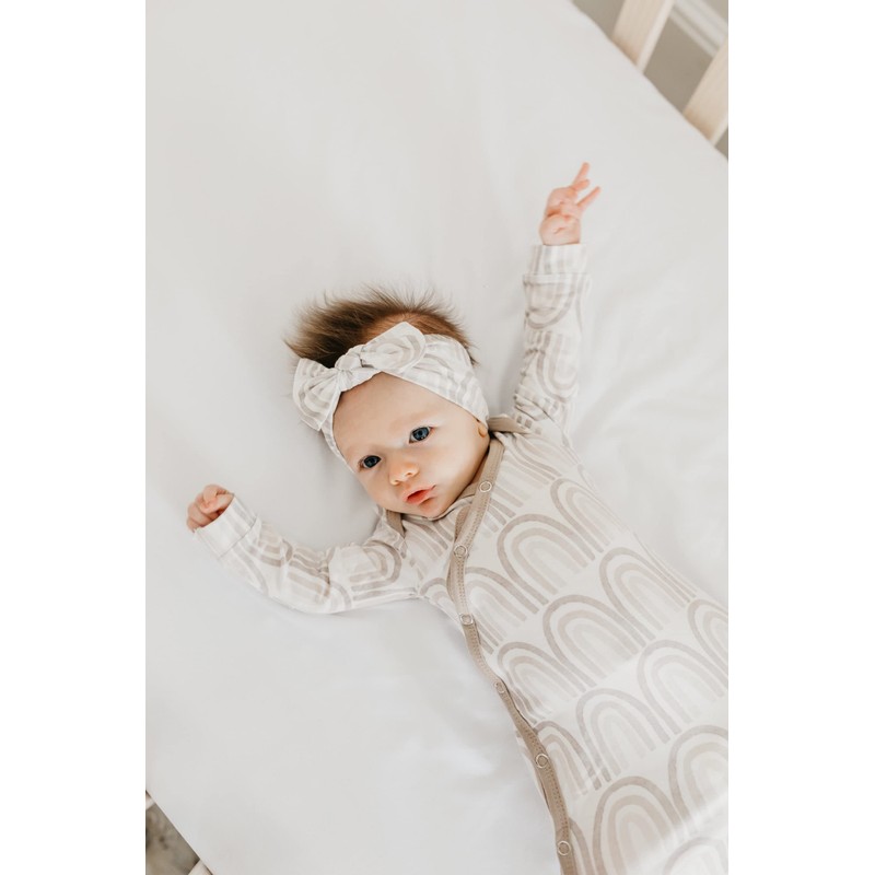 ¡Tu lazo favorito! Disponible en una gama de estampados de moda, nuestra elegante diadema de lazo está hecha con la misma tela suave que nuestros otros artículos de perlas de cobre. Tamaño perfecto para recién nacidos, cuenta con suficiente elasticidad para crecer con el bebé durante los primeros meses. Porque nunca eres demasiado joven para complementar