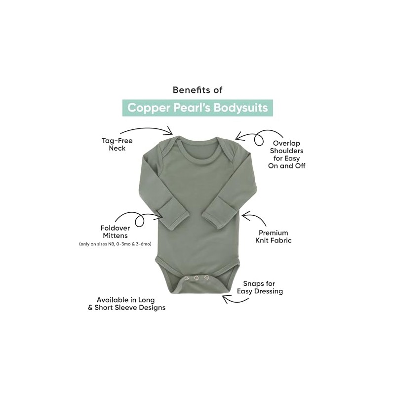 - TRENDY, HIGH-QUALITY DESIGNS, At Copper Pearl, we pride ourselves on making high quality products that always look great on babies and toddlers, moms, or in your nursery; Our bodysuits are simple, modern, and sure to elevate your little one’s style
