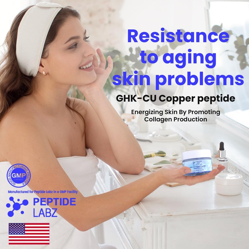 - Copper peptide face cream. GHK-Cu and hyaluronic acid for firming, repairing, reducing fine lines, anti- aging and moisturizing.