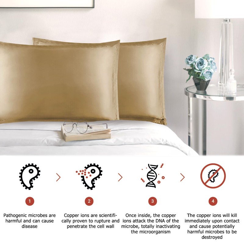 * Copper pillowcase fabric feels like smooth, supportive silk on your face.