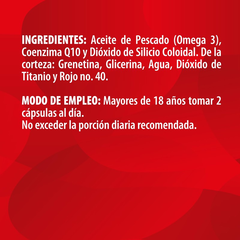 - Alta concentración: Dosis óptima de CoQ10 y Omega 3.