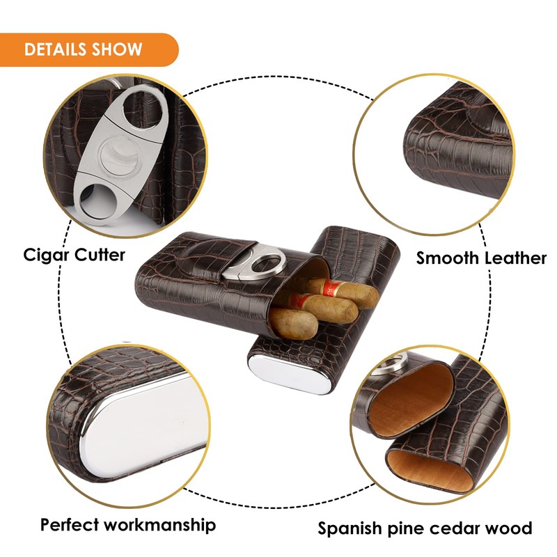 COQOFA 3-Finger Crocodile Pattern Leather Humidors Handmade Cigar Boxes Humid...