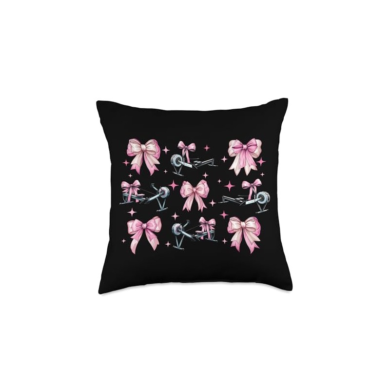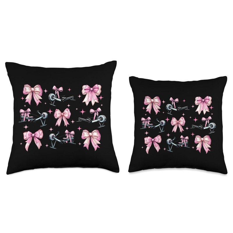 Coquette Bow Rowing Machine Rowing Workout Girl Mom Pink Throw Pillow