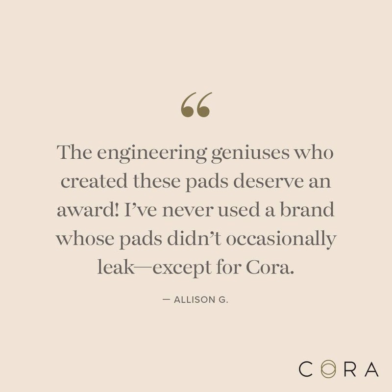 - NO STRESS LEAK PROTECTION: POWERFULLY ABSORBENT, YET RADICALLY THIN. Engineered with Cora's patent pending channel technology, our micro thin pads powerfully absorb more than 10x their weight to keep you feeling drier, longer. So thin and comfortable that you'll forget you're even wearing it.