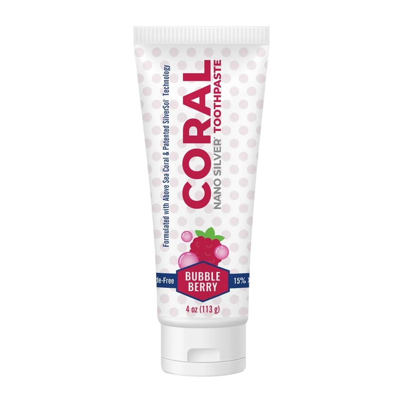 - Coral nano silver Kids fluoride free berry bubblegum toothpaste is the perfect oral care companion for kids. A non toxic 100% safe to swallow toothpaste that is specially formulated to make brushing a fun and enjoyable experience while promoting healthy teeth and gums.