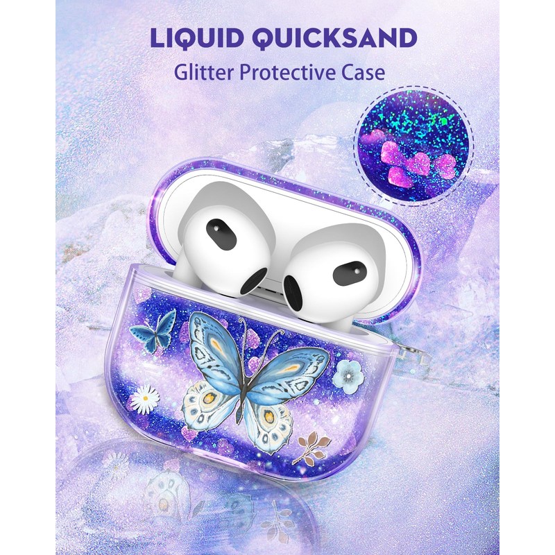 Coralogo for Airpods 3rd Generation Case - Quicksand Liquid Cute Kawaii Mujer Girl Women Aesthetic Cover Sparkling Sparkle Glitter Bling Purple Butterfly Keychain Girly for Airpods 3 Case
