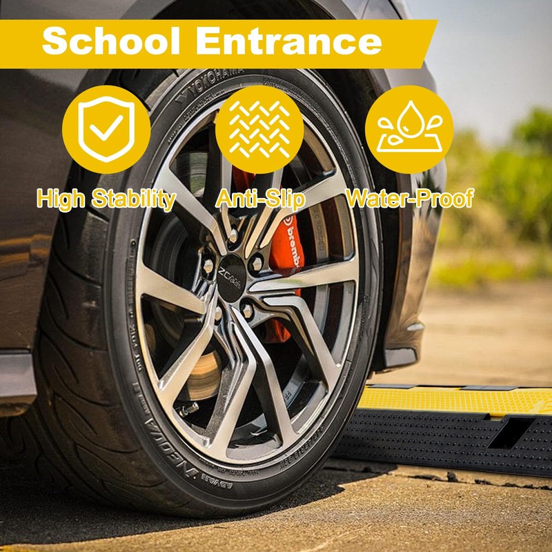 - Anti-Slip Safety Design: The textured surface with dot patterns provides excellent anti-slip properties, ensuring safety for vehicles.1.97" in height, slow down speed ramp works for both low cars and high cars. 5 cable channel with a width of 1.3", suit for cables, wires, and hose. Product size in 36.22"*19.69"*1.97"
