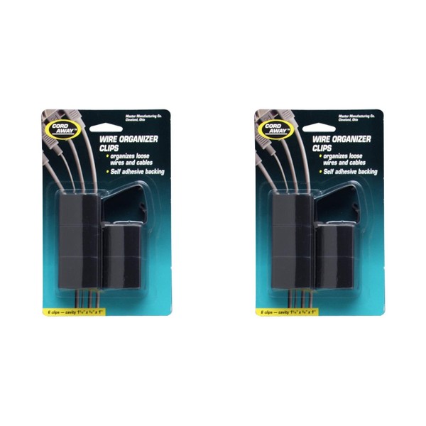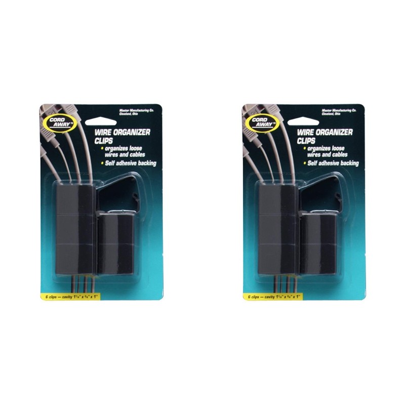 CordAway Wire Clips, Self Adhesive Backing, Wire Management, Desk Cord Holder & Organizer | Black - 2 Packs (6 Clips per Pack, 12 Total Clips)