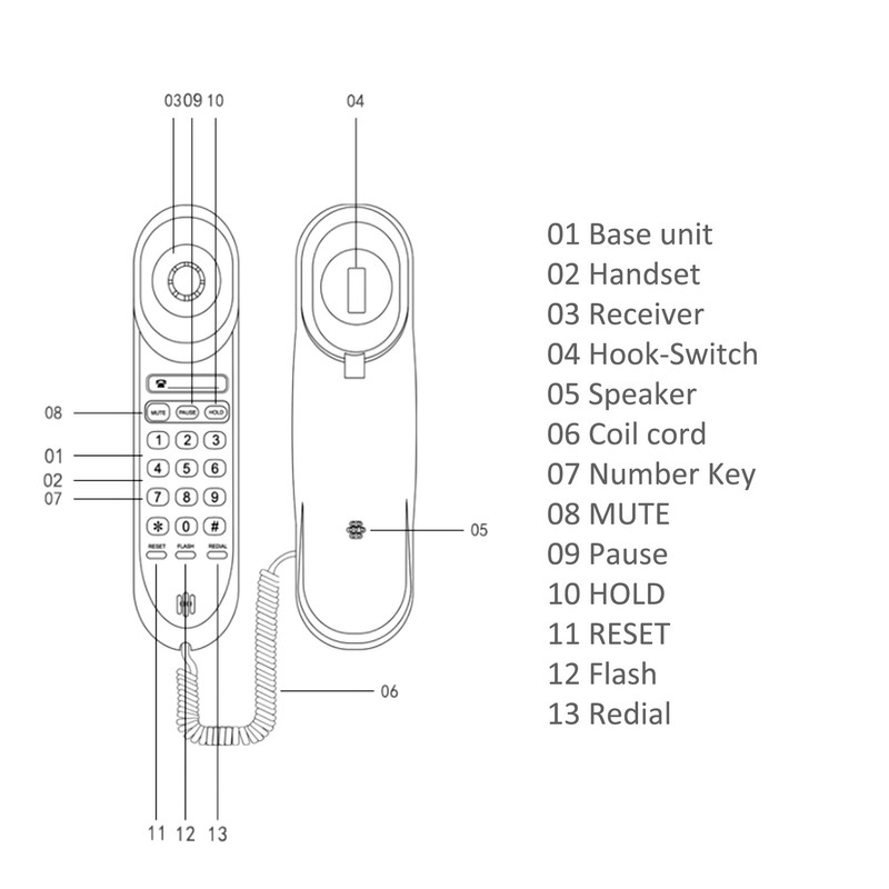 1、Multifunction Phone: Pause function and last number redial function. You can take a break by pressing pause or holding the button while the phone is on, which helps protect your secrecy and secrets. In the event of a sudden hanging up, the Last Number Redial feature can immediately redial the last number to continue your business. Very practical. 2、Desk and Wall Mounted Small Phones: Landline corded phones can be placed on the desk or hung on the wall to meet your different needs. 3、Easy To Use: Connect the phone to your phone jack via the included phone cord. It doesn't require batteries. This corded phone has easy to use buttons. 4、Wide Range Of Application: The wall mounted phone is made of high quality ABS material, which is exquisite and beautiful, suitable for home decoration and business gifts. You can also use it in the living room, bedroom or kitchen for home and office use. 5、Function: Reset, flash, redial; mute, volume adjustment, pause; lightning protection, anti theft broadcast.
