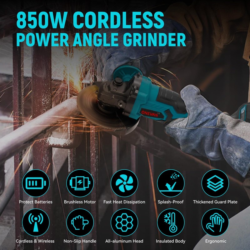 - Perfect Accessories For Grinder Tools: 1 x Cordless Angle Grinder, 2 x 21V 4.0Ah Batteries, 1 x Fast Charger, 6 Saw Blades, 1 x Carrying Box 1 x Gloves, 1 x Goggles.