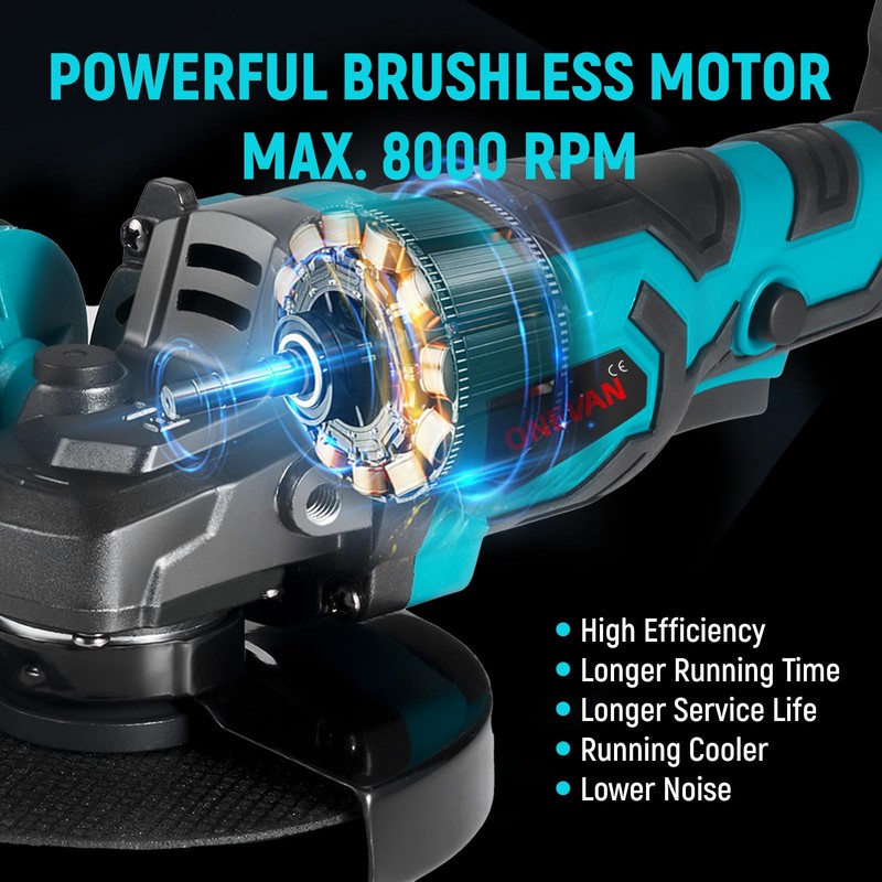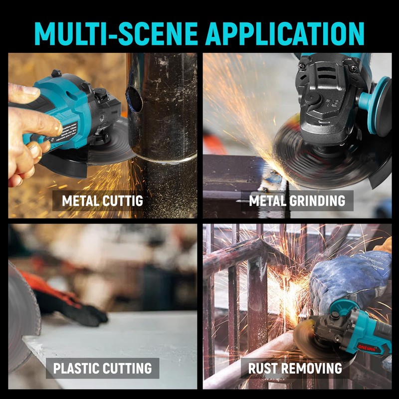 - High Performance Brushless Motor: This variable speed angle grinder is equipped with a powerful brushless motor with a speed of 10000 revolutions per minute, great for grinding metal, rust removal, metal/steel cutting, metal polishing.