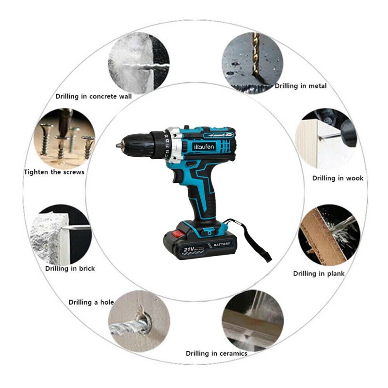 ✏️2-SPEED FOR DIFFERENT APPLICATIONS - 25+1 torque settings and 2-Speed( ( 0-450 & 0-1500 RPM ) of power drill allows the user to find just the right speed for each job. cordless drill is perfect for DIY and craft projects at home. It's good ideal gift for ourselves, family and friend.