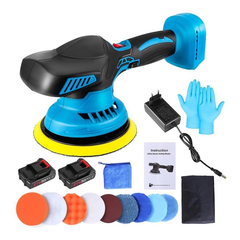 - 【Large capacity batteries】This electric polishing machine is equipped with two 21V, 1300mAh batteries for replacement, making it an ideal choice for outdoor polishing. Large capacity batteries can support long-term use. The battery indicator light is convenient to remind charging.