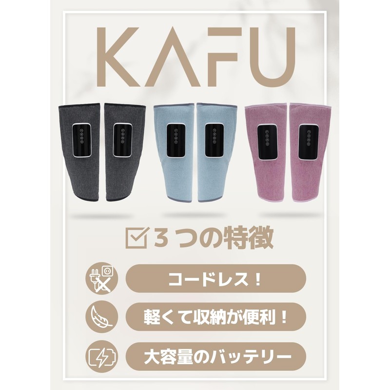 Cordless Calf Care, LeadSelect KAFU (Gray), 3 Levels of Strength, 3 Modes, Heater Function, 20 Minutes Timer, Air Leg Care, Easy to Carry, Easy to Care, Gift, Japanese Instruction Manual, Relaxation, Lightweight