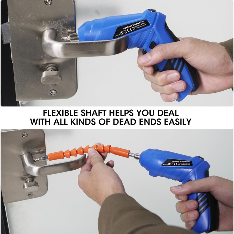 - 【Cordless Design & LED Lighting】① Cordless Screwdriver: This hand drill designed to be compact and lightweight, is easier to control and grip. ergonomic design handle allow you to perform intricate work without excessive stress on your hand; ③ The bright front LED light will automatically light up when the electric screwdriver is working, which makes your work safer in the dark or confined workspace. we equip you with additional magnetic flexible shafts. You can use it to rotate unseen screws