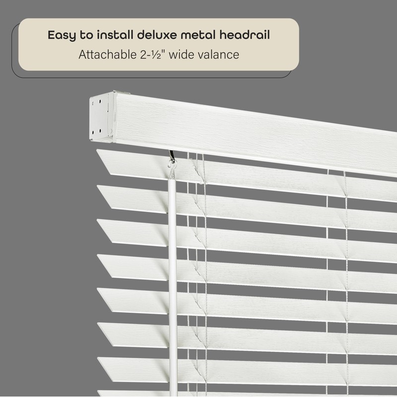 - Features a Deluxe Metal Headrail with an attachable 2-1/2” wide valance