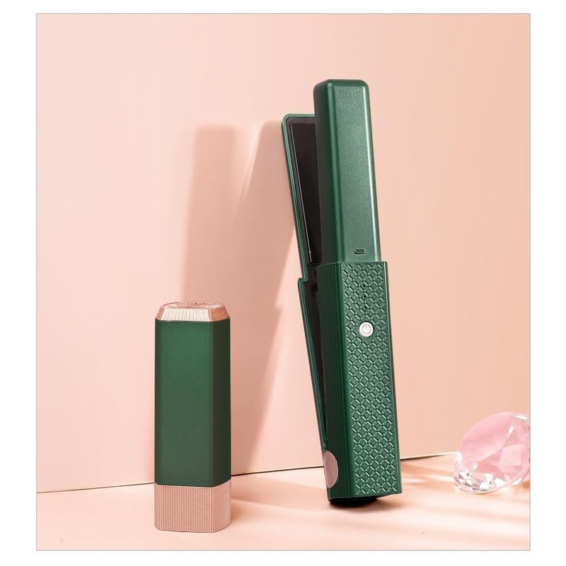 Cordless Hair Straightener, 2 in 1 Portable Mini Ceramic Flat Iron and Curler, USB-C Rechargeable Travel Straightener, Lock in Moisture & Shine, 3 Levels Adjustable (Green)
