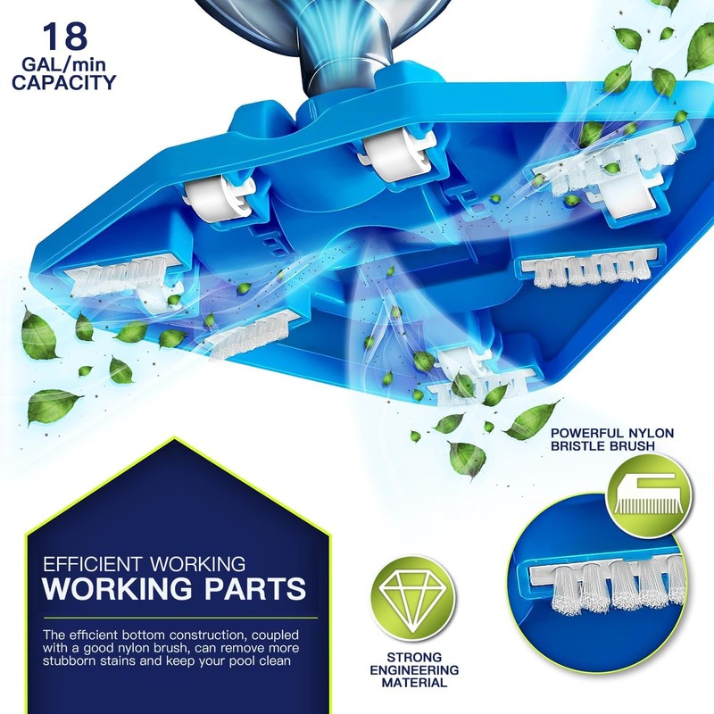- 【Cordless & Powerful】No cords, no limits. Pool vacuum featuring a lightweight design and 18GPM powerful suction that picks up acorns, twigs, leaves, dirt and sand (not for algae). Effortlessly cleaning corners and deep spots