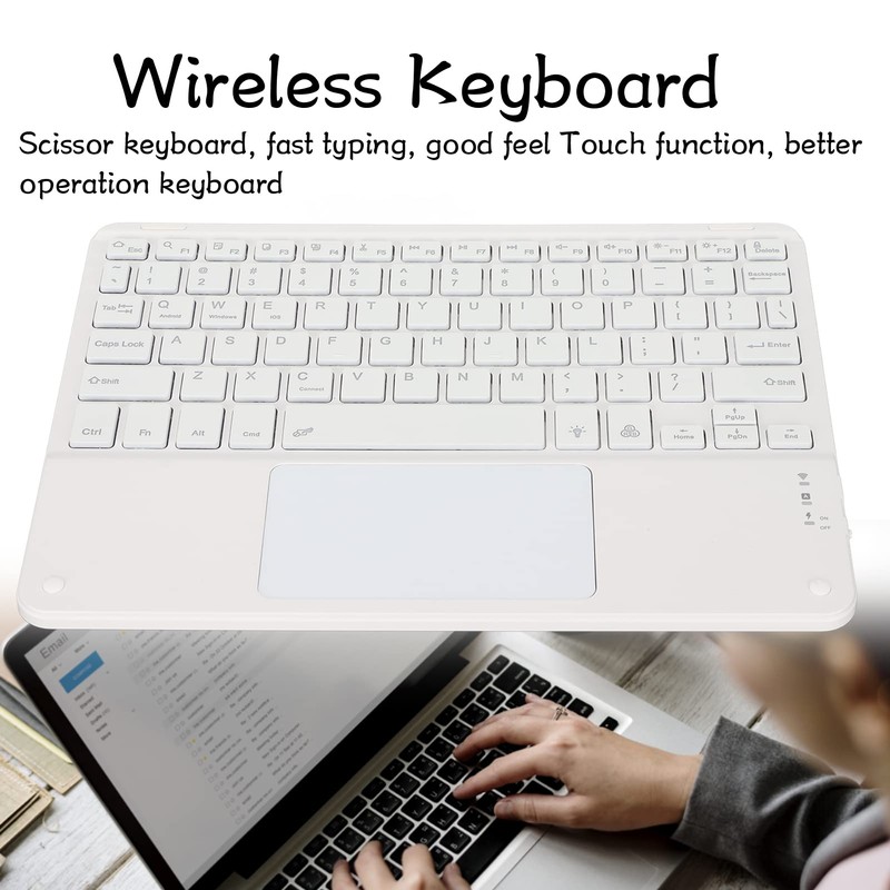 2. Ultra Thin: The mini cordless keyboard with touchpad for tablet is lightweight and ultra thin, it is very convenient to carry it for travel or business trips
