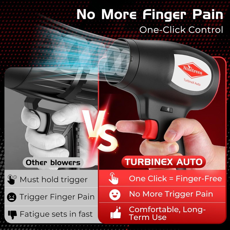 - ONE-TOUCH LOCK MODE FOR HANDS-FREE OPERATION: Say goodbye to finger fatigue! Our leaf blower features an innovative switch control valve—press once to lock the airflow for continuous use and press again to stop. Perfect for extended yard cleanups.
