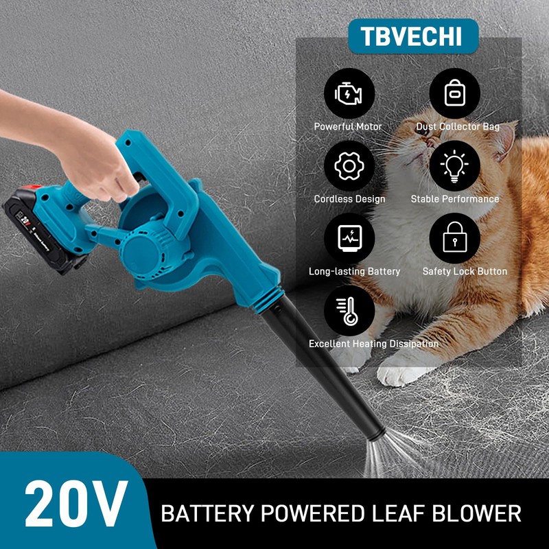 - Multifunction - Vacuum Cleaner: After installing the blow tube and the dust collection bag, this leaf blower battery powered can be used as a vacuum cleaner for sucking up computer dust, pet hair, crushed cookies, and more, reducing your cleaning burden.