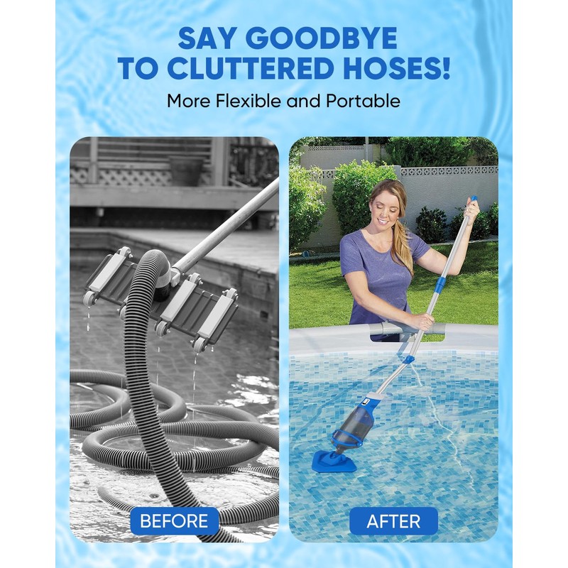 Teguy Cordless Pool Vacuum with Telescopic Pole, 18.5 GPM Powerful Suction, 1.5H Supercharge Technology, Handheld Rechargeable Pool Vacuum Cleaner for Above Ground/Inground Pools, Hot Tubs, Spas