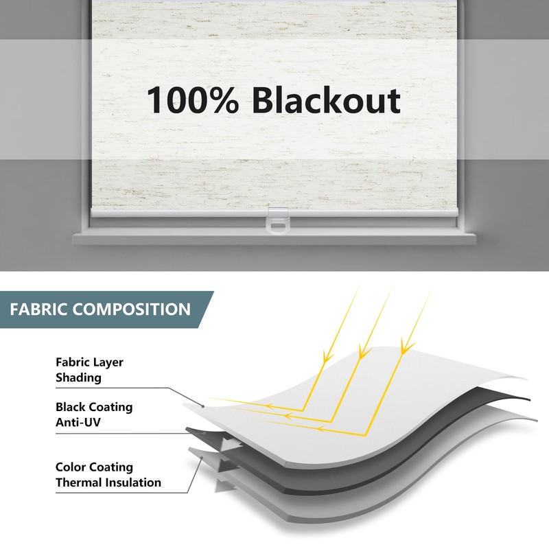 - 【Excellent Material】:Made of 100% Natural Linen Fabric with reinforce thermal insulated coating, feeling soft and smoot. No burrs, wear resistance, and easy to clean.Our blackout blinds block 100% of sunlight and UV rays. The thermal backing reduces the loss of room heat and cold through the windows in winter and summer, helping to reduce your energy bills.