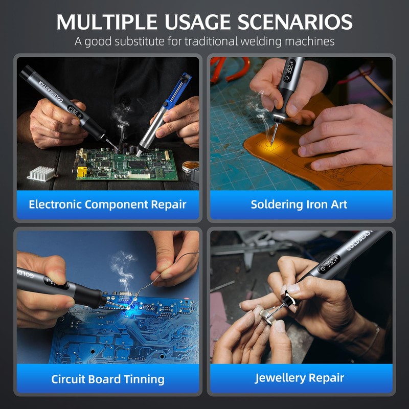 - 【Intelligent Energy Saving】The built-in weight sensor, the soldering iron stand still for 40 seconds will enter sleep mode, enhancing safety and battery life during prolonged repair sessions.to prevent overheating and ensure safety. Automatically restart to heat up to the temperature you set when picking it up again.