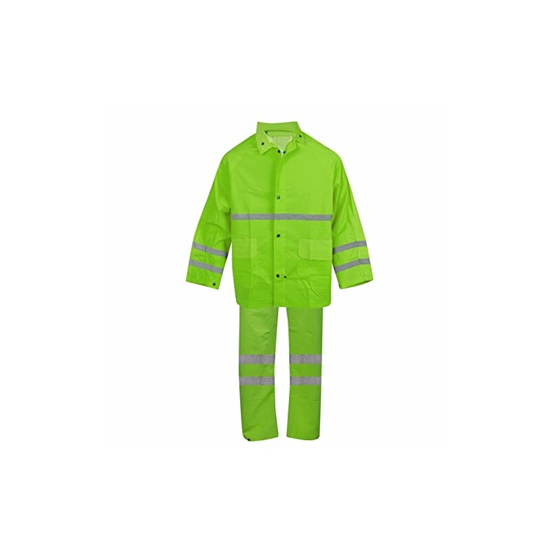 Cordova HV353G6XL Riptide .35 MM PVC/Polyester, Hi-Vis Lime, 3-Piece Rain Suit, Silver Reflective Stripes, Bib Pants With Suspenders, Detachable Hood, 6X-Large, 3-Pack