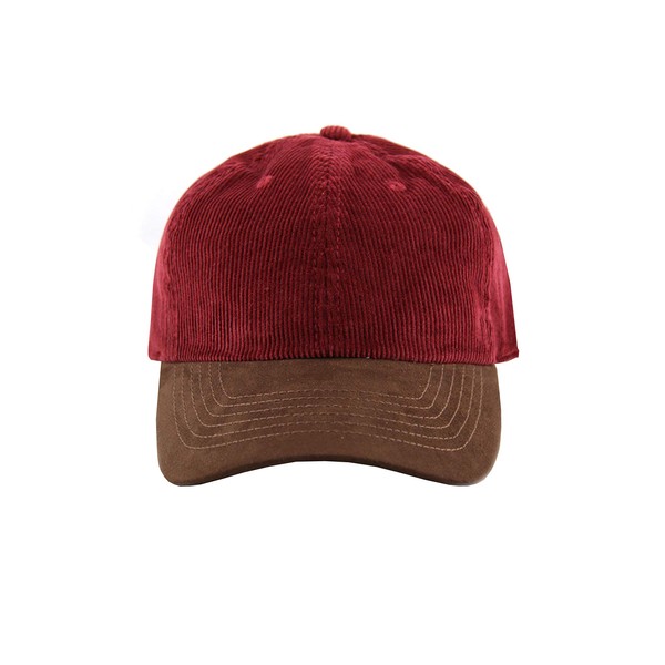 Corduroy Unisex Baseball Hat | Unstructured Cotton Classic Dad Cap | Hat with Adjustable Strap and Brass Buckle Burgundy