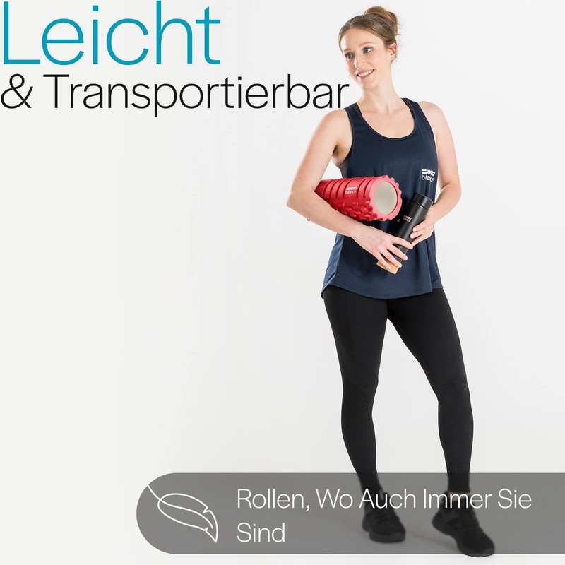 - Fitness roller with EVA foam for more comfort: the yoga roller and pilates roller is made of EVA foam, which is firm enough to allow a deep muscle massage without feeling too hard. Another advantage of the EVA foam is that it retains its shape even after intensive use, which means that the roller does not wear out over time.
