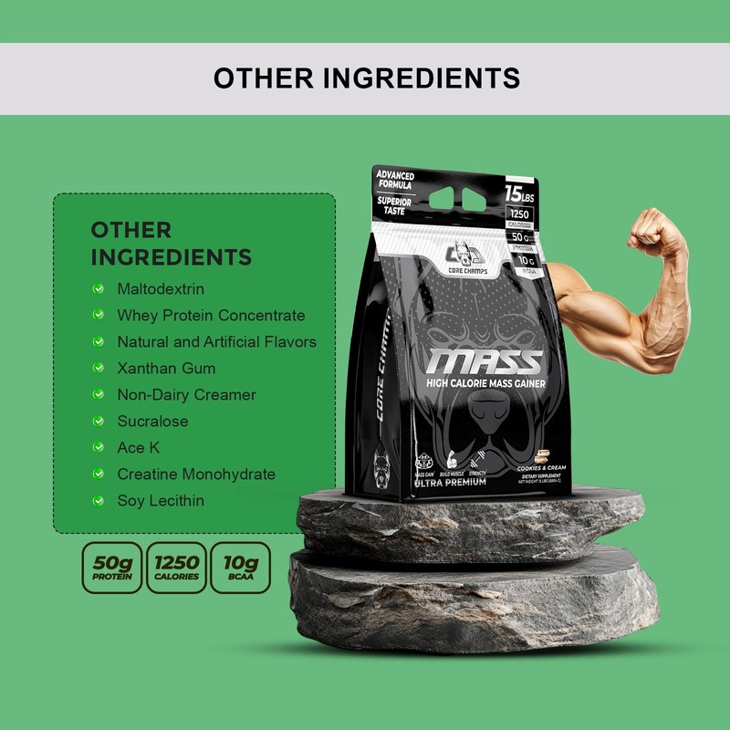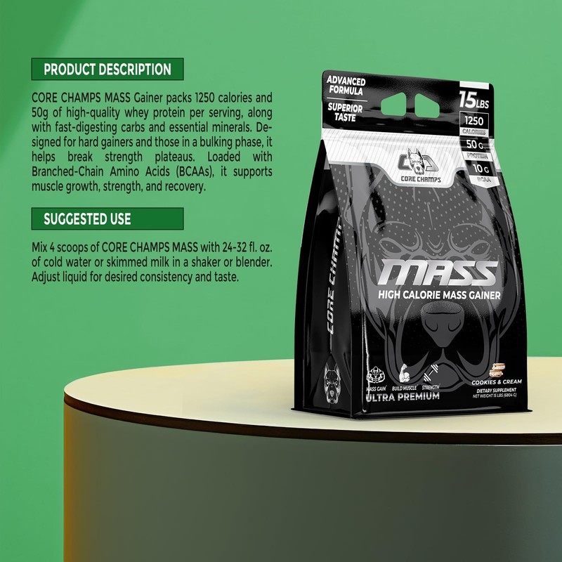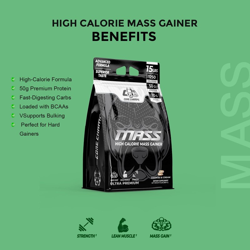CORE CHAMPS MASS Gainer contains 50-gram high-quality protein, quickly digested carbohydrates, and other minerals. This advanced mass gainer has been designed for any individual who has a tough time adding size, is in their bulking phase, or wants to break through their strength plateaus.