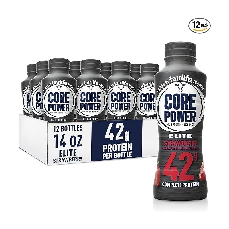 - MAXIMIZE RECOVERY: Core Power fights post-workout fatigue with high-quality protein to help refuel, rehydrate and rebuild muscles post-workout. HIGH-QUALITY PROTEIN: Recovery starts with protein. Protein works to repair and rebuild muscle to help you power on to your next workout CONTAINS ALL 9 ESSENTIAL AMINO ACIDS: Made from fairlife ultra-filtered milk, Core Power Elite Strawberry is a delicious way to recover. Contains the calcium, vitamin D and electrolytes your body needs. NUTRITION: 42g high-quality protein milk shake, strawberry, 14oz bottle LACTOSE FREE and SHELF STABLE: refrigerate after opening CORE POWER: Champion Your Recovery