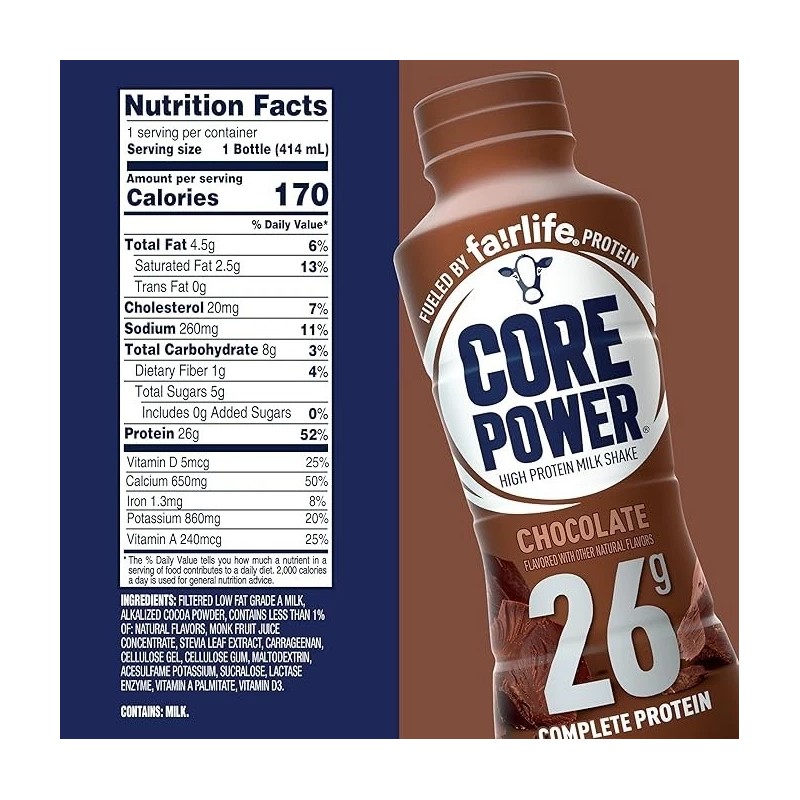 Core Power Protein Shake, Chocolate, 26g Bottle, 14oz, 12 Pack