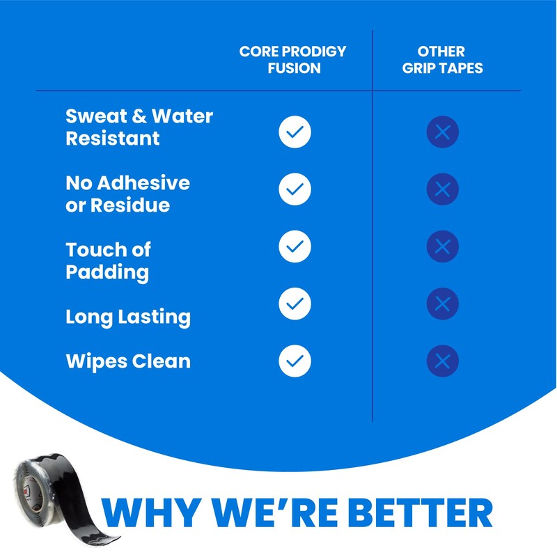 - No-Slip Lightly Padded Grip - Use Core Prodigy Fusion where you need zero slippage and a slight shock absorbing grip tape.