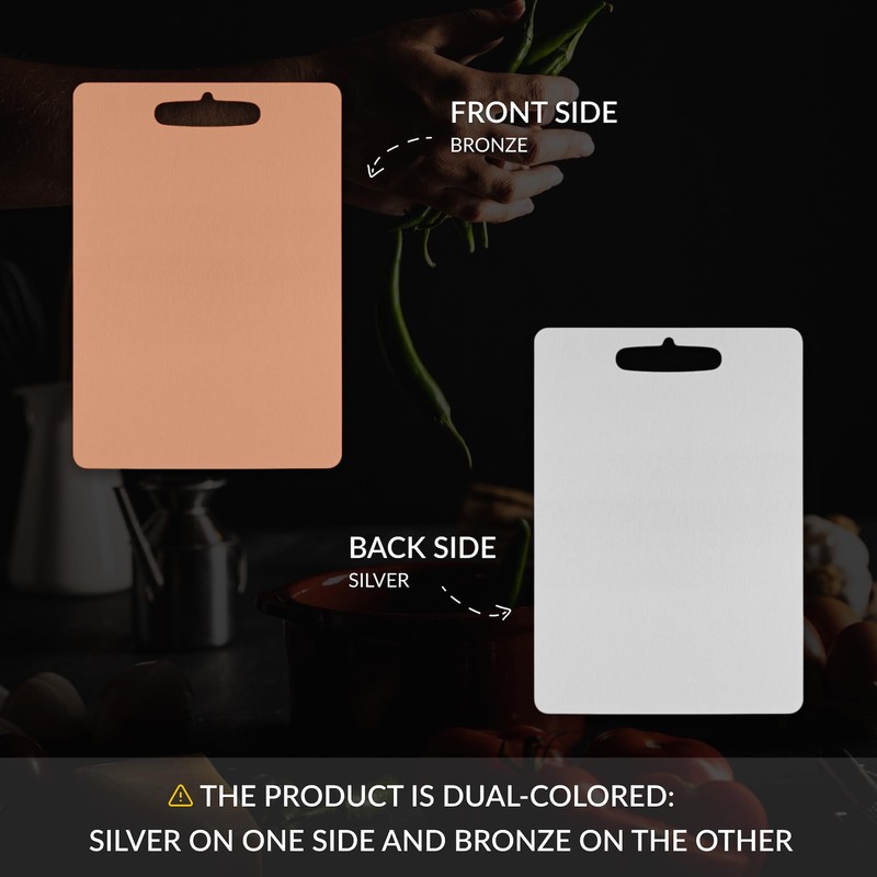 Core Steel Stainless Steel Heavy Duty Dishwasher Safe Cutting Board - Made in USA - Durable and Versatile Kitchen Tool for Precise and Effortless Food Preparation - (11.4"L x 7.9"W) (Bronze)