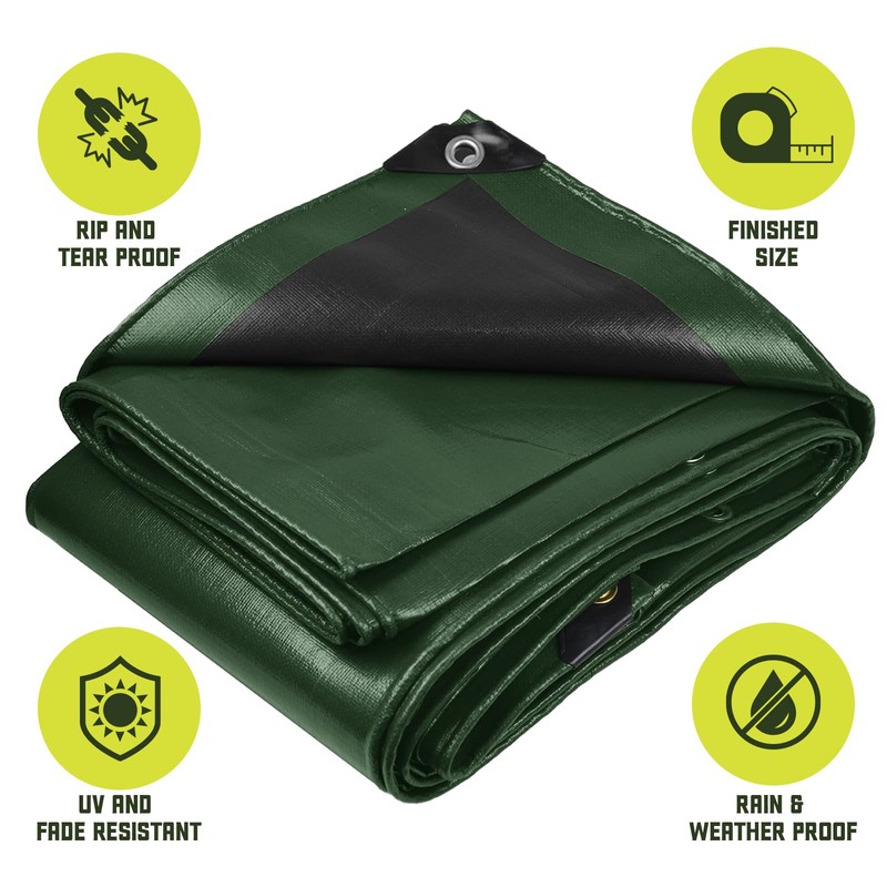 - UV RESISTANT, WATERPROOF AND WEATHERPROOF: You can use the ultra-thick tarp throughout the entire year, whether it’s windy, raining, snowing or raining. The premium poly tarp is weatherproof, waterproof and UV resistant and it will protect any object from all extreme weather conditions.
