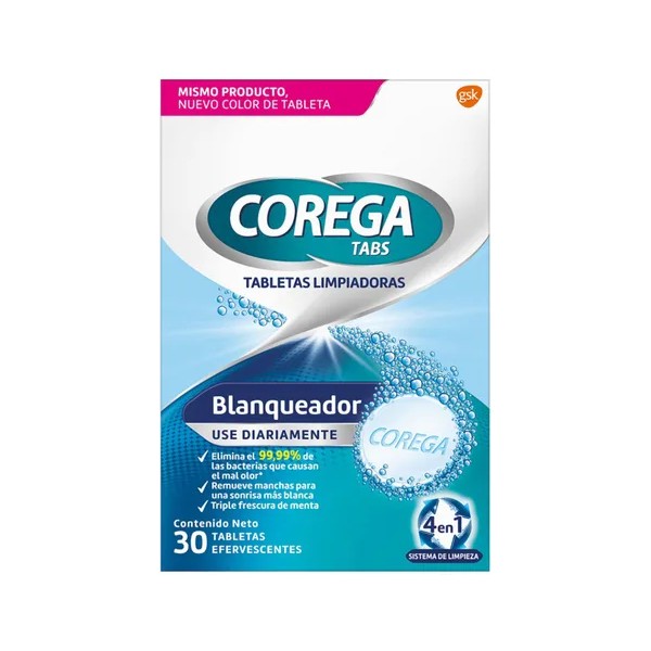 Corega Tabs Blanqueador Tabletas Limpiadoras Efervescentes 30 Unidades
