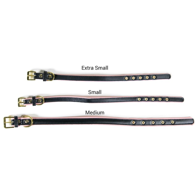CoreLife Girl Dog Collar/Cat Collar Adjustable XS - Small Pink Soft & Comfy Padded Leather Puppy Cute Pet Collars - Black