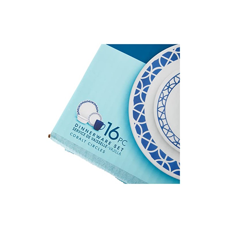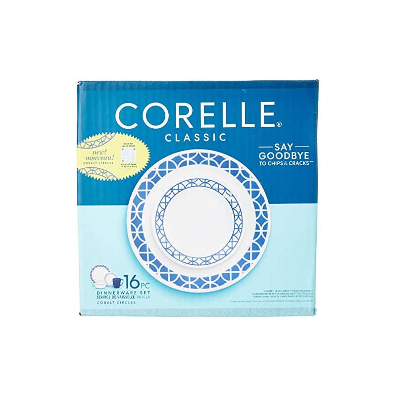 Corelle Cobalt Circles 16-Piece Dinnerware Set Service for 4 Blue