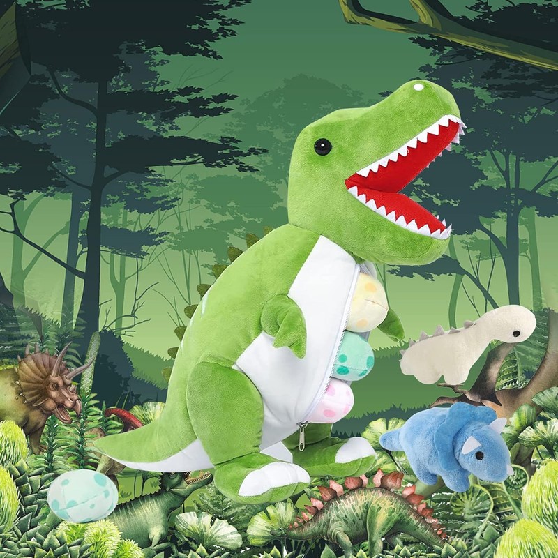- ✔️【INTERACTIVE TOYS】 The combination of bright and multiple colors of the stuffed dinosaur improves your child's agility and cognition to color. Boys and girls will love unzipping the dinosaur's belly to find more fun little dinos, have the babies play with mommy, create an imaginative land for their dinosaur set, or take the little dinosaur family on adventures.