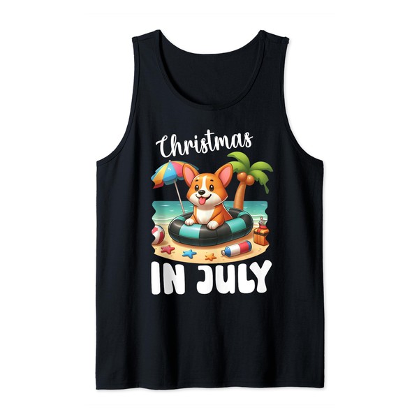 CORGI on Inflatable Boat Merry Christmas in July Day Lover Tank Top