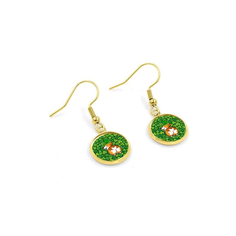 Corgie St Patrick's Day Drop Dangle Earring, Gold