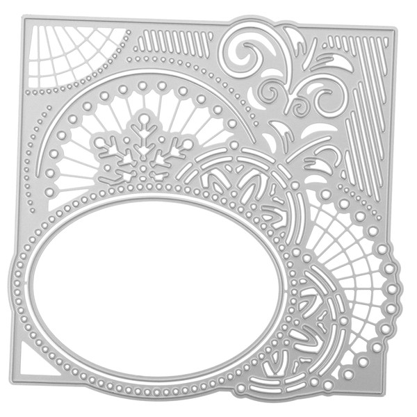 -Size: 13.50X13.30X0.20cm/5.31X5.23X0.08 in photo frame die stencil.